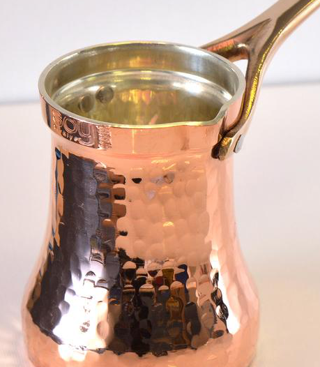 Джезва SOY C3G ROMANTIC предназначена для заваривания молотых кофейных зёрен по-турецки. Имеет удобную ручку и носик, что позволяет аккуратно наливать напиток в чашку. Ёмкость изготовлена из меди толщиной 1.5 мм с внутренним покрытием из серебра, ручка – из бронзы, клёпки крепления ручки – из меди. Используется на предприятиях общественного питания и торговли, а также в домашних условиях.