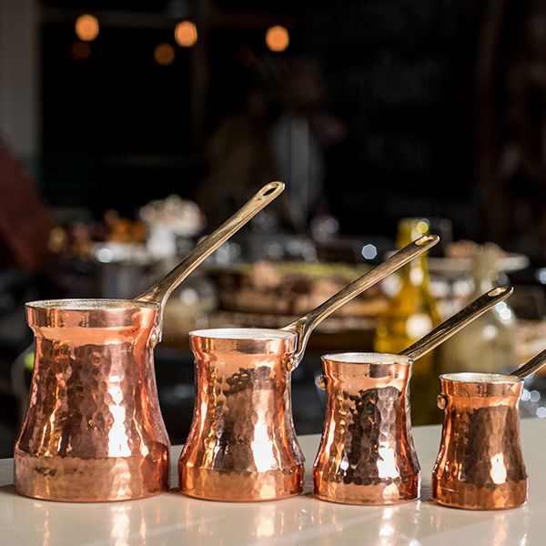 Джезва SOY C4G FAMILY предназначена для заваривания молотых кофейных зёрен по-турецки. Имеет удобную ручку и носик, что позволяет аккуратно наливать напиток в чашку. Ёмкость изготовлена из меди толщиной 1.5 мм с внутренним покрытием из серебра, ручка – из бронзы, клёпки крепления ручки – из меди. Используется на предприятиях общественного питания и торговли, а также в домашних условиях.