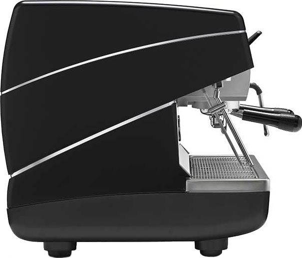 Рожковая автоматическая кофемашина NUOVA SIMONELLI APPIA II COMPACT 2 GR V с подключением к водопроводу предназначена для приготовления кофе эспрессо и капучино. Оснащена двумя высокими термокомпенсированными группами, экономайзером, краном для подачи горячей воды и двумя паровыми кранами из нержавеющей стали с системой PUSH&PULL. Осуществляет автоматическую подачу горячей воды и кофе. Бойлер изготовлен из меди, основание и боковые панели – из матового чёрного ABS-пластика, задняя панель со вставкой из стали, рабочая поверхность – из нержавеющей стали.