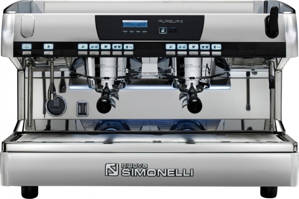 Рожковая автоматическая кофемашина NUOVA SIMONELLI AURELIA II 2 GR V с подключением к водопроводу предназначена для приготовления кофе эспрессо и капучино. Оснащена двумя высокими группами, экономайзером, краном для подачи горячей воды, 2 паровыми кранами из нержавеющей стали с системой PUSH&PULL. Осуществляет автоматическую дозацию кофе и горячей воды. Бойлер изготовлен из меди, корпус из нержавеющей стали с вставками из чёрного ABS-пластика чёрного цвета.