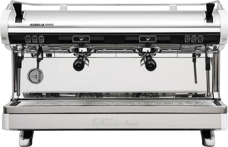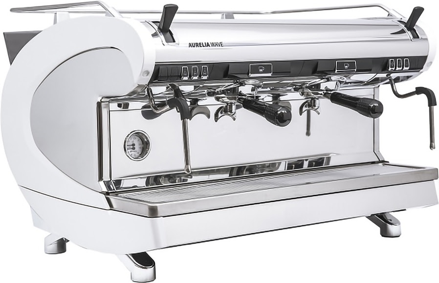Рожковая полуавтоматическая кофемашина NUOVA SIMONELLI AURELIA WAVE 2GR S с подключением к водопроводу предназначена для приготовления кофе эспрессо и капучино. Оснащена двумя высокими группами, экономайзером, краном для подачи горячей воды, двумя паровыми кранами из нержавеющей стали и LED-подсветкой рабочей поверхности. Предусматривает ручную дозацию кофе, горячей воды и пара. Бойлер изготовлен из меди, корпус из нержавеющей стали с вставками из ABS-пластика (на выбор предлагаются два цвета – чёрный и жемчужный).
