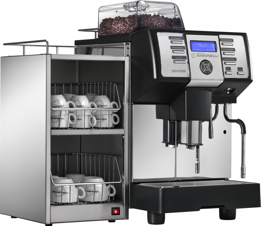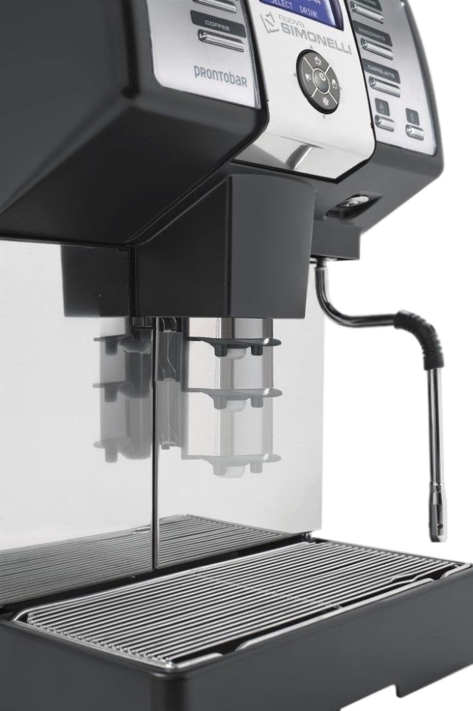 Суперавтоматическая кофемашина NUOVA SIMONELLI PRONTOBAR 1 GRINDER заливного типа предназначена для приготовления кофе эспрессо, капучино, ристретто, лунго, макиато и ещё десятка других кофейных и молочных напитков. Оснащена одной съёмной регулируемой термокомпенсированной группой, встроенной кофемолкой, двумя бойлерами, паровым краном и краном для подачи горячей воды. Осуществляет автоматическую дозацию напитка, подачу горячей воды и пара. Группа изготовлена из литого алюминия и нержавеющей стали, паровой кран и бойлеры – из нержавеющей стали, корпус – из нержавеющей стали с вставками чёрного ABS-пластика.