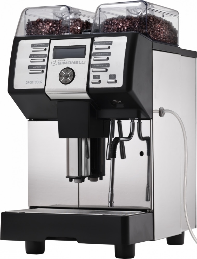 Суперавтоматическая кофемашина NUOVA SIMONELLI PRONTOBAR 2 GRINDER заливного типа предназначена для приготовления кофе эспрессо, капучино, ристретто, лунго, макиато и ещё десятка других кофейных и молочных напитков. Оснащена одной съёмной регулируемой термокомпенсированной группой, двумя встроенными кофемолками, двумя бойлерами, паровым краном и краном для подачи горячей воды. Осуществляет автоматическую дозацию напитка, подачу горячей воды и пара. Группа изготовлена из литого алюминия и нержавеющей стали, паровой кран и бойлеры - из нержавеющей стали, корпус - из нержавеющей стали с вставками чёрного ABS-пластика.
