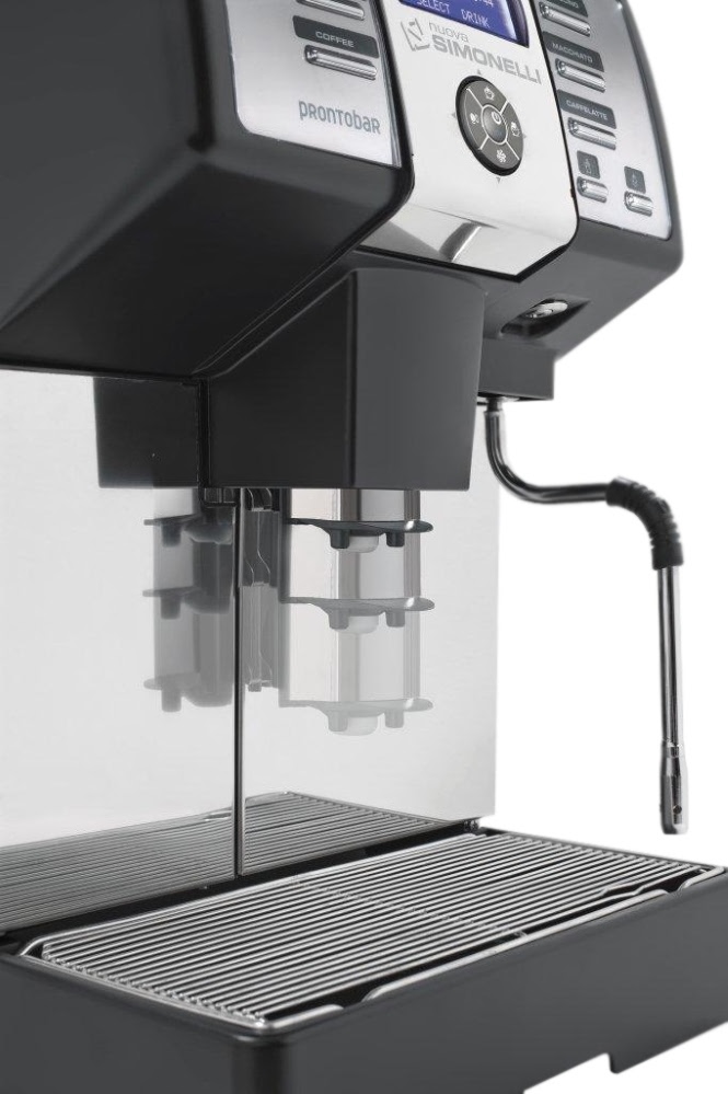 Суперавтоматическая кофемашина NUOVA SIMONELLI PRONTOBAR 2 GRINDER AD с подключением к водопроводу предназначена для приготовления кофе эспрессо, капучино, ристретто, лунго, макиато и ещё десятка других кофейных и молочных напитков. Оснащена одной съёмной регулируемой термокомпенсированной группой, двумя встроенными кофемолками, двумя бойлерами, паровым краном и краном для подачи горячей воды. Осуществляет автоматическую дозацию напитка, подачу горячей воды и пара. Группа изготовлена из литого алюминия и нержавеющей стали, паровой кран и бойлеры - из нержавеющей стали, корпус – из нержавеющей стали с вставками чёрного ABS-пластика.