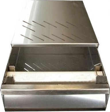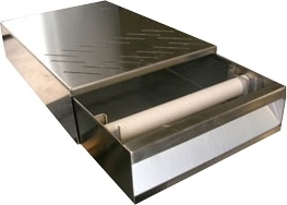 Оснащена выдвижным ящиком для хранения кофе. Корпус изготовлен из нержавеющей стали.