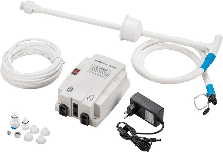 Помпа BOTTLED WATER SYSTEM BWD5000 предназначена для подачи воды из бутыли в кофемашину. Для использования помпы необходимо, чтобы кофемашина имела возможность подключения к водопроводу.