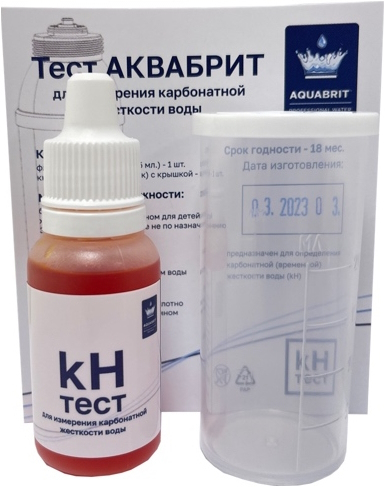 Тест АКВАБРИТ (°КН) предназначен для определения карбонатной жёсткости (KH) холодной водопроводной воды. Используется для точной настройки фильтр-системы BRITA, что позволяет обеспечить наилучшее качество воды на выходе и, как следствие, продлить срок службы подключённого к фильтр-системе оборудования.